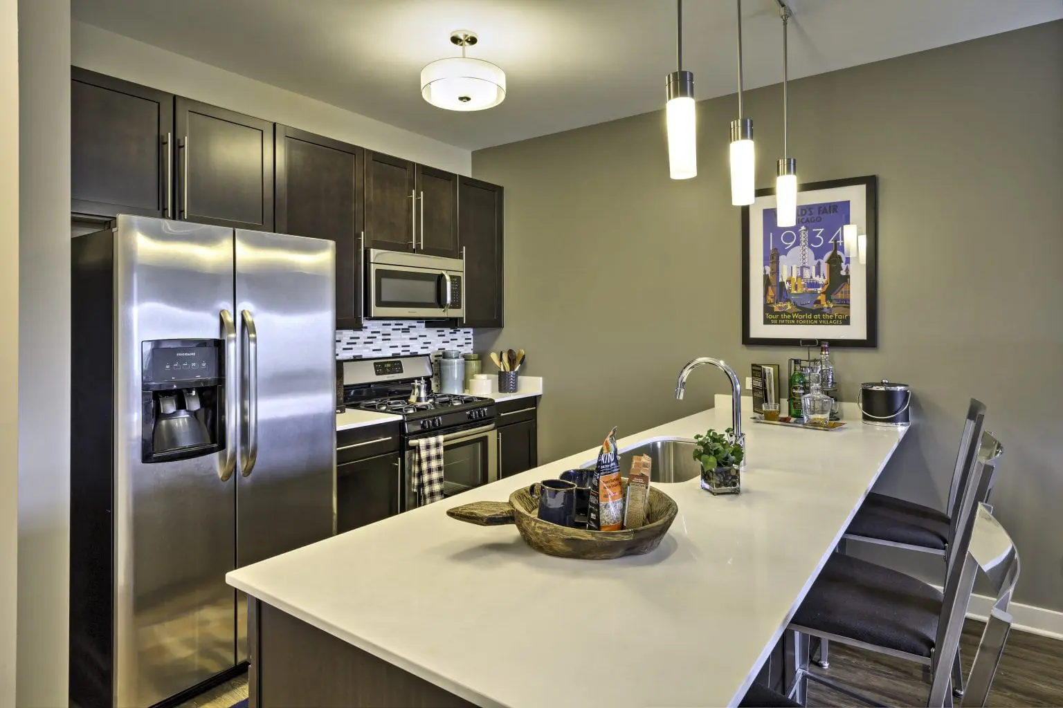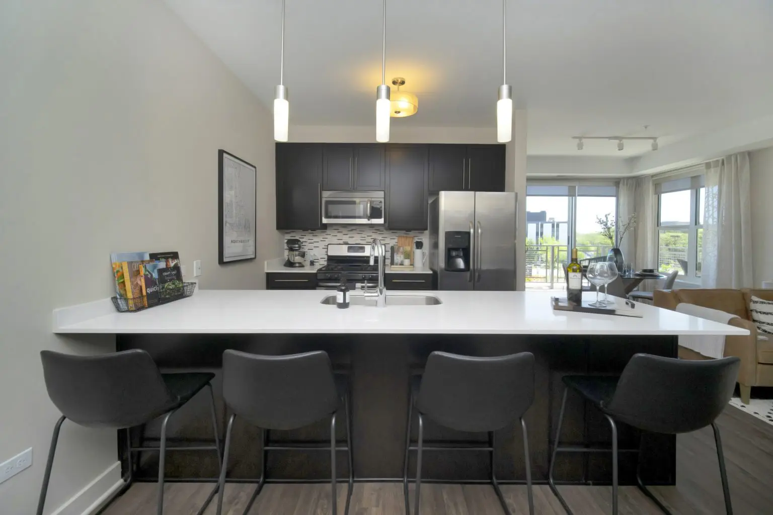 TGM NorthShore apartment homes raise the bar for premium apartment living. Choose from 32 unique 1- and 2-bedroom open floor plans that feature a gourmet kitchen fully-equipped with stainless steel appliances; Grohe fixtures and quartz countertops; plank flooring and soaring 9’ ceilings; full-size washer/dryer; walk-in closets; private balcony or patio; and many other high-end details. Our loft penthouse apartment homes take apartment living to new heights with 10’ ceilings, elevated finishes and expanded city views.